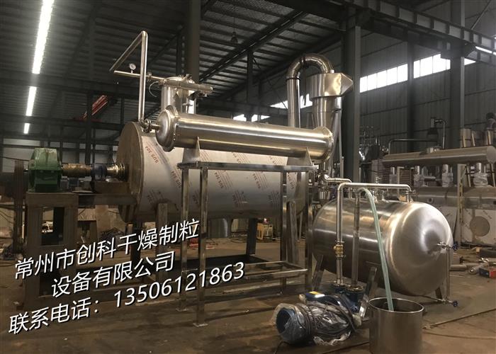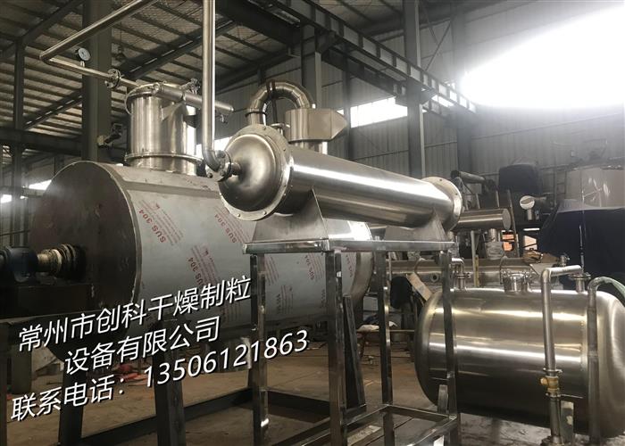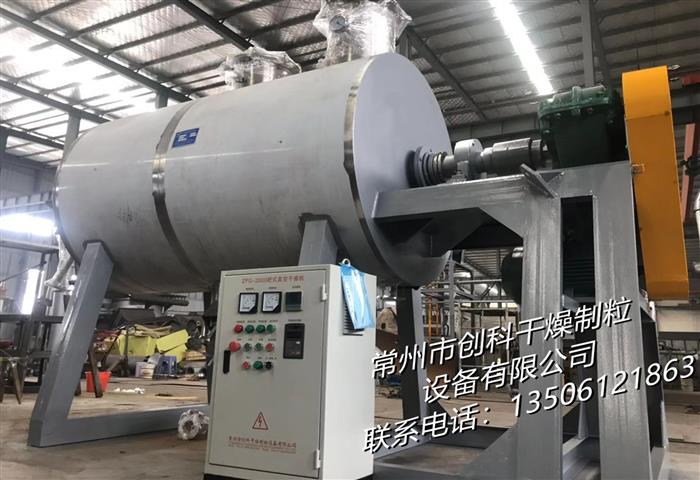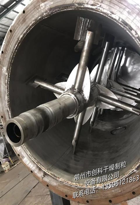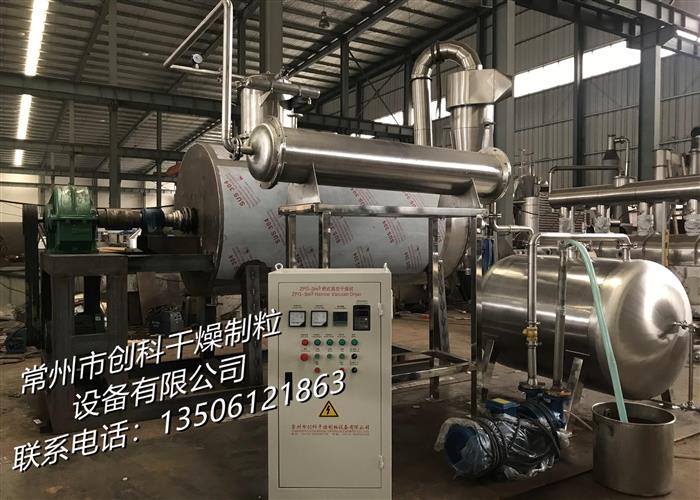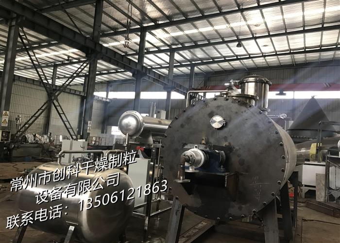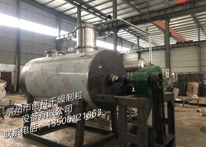 本机是一种新颖卧式间歇式真空干燥设备,湿物料经传导蒸发,带有刮板搅拌器不断清除热面上的物料,并在容器内推移形成循环流,水份蒸发后由真空泵抽出。